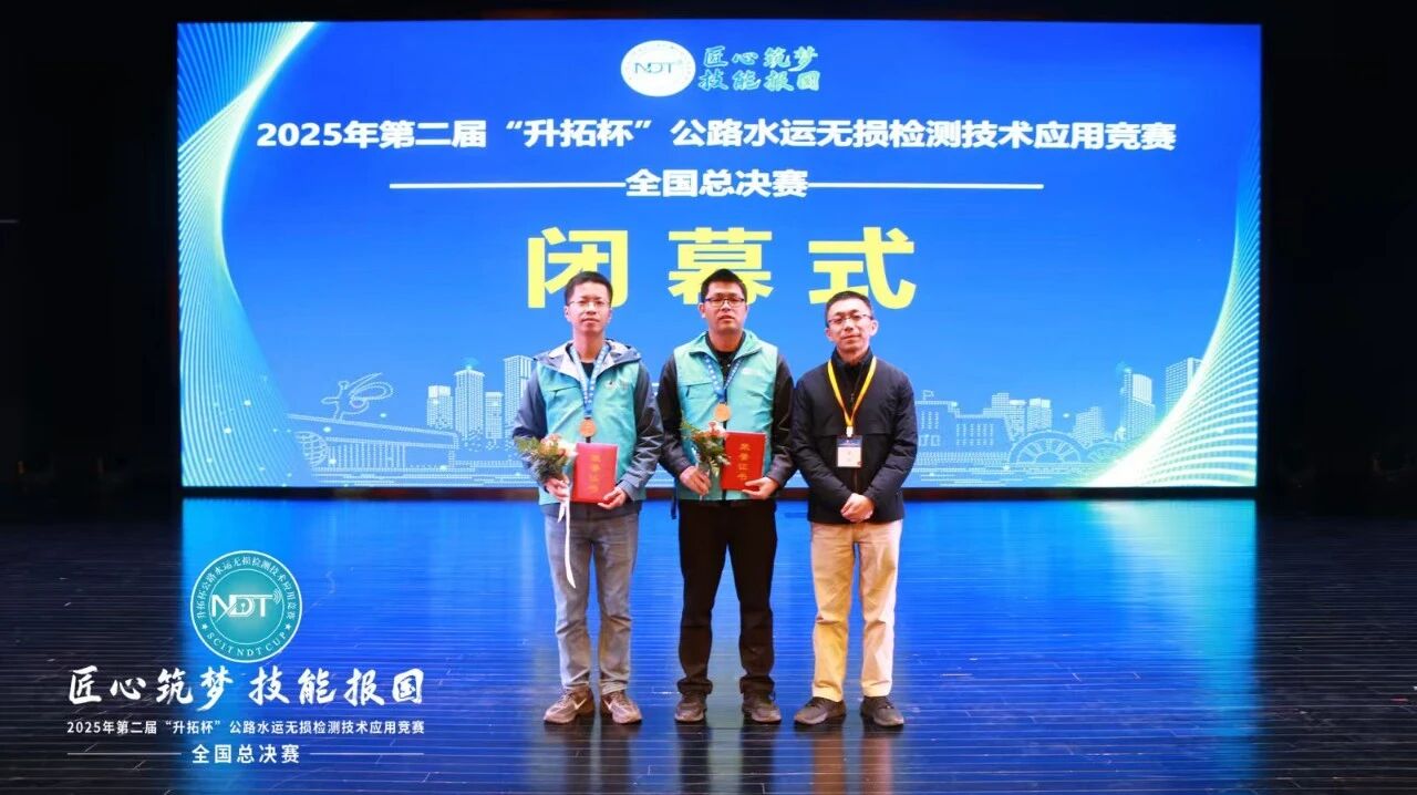 10月12日至15日,2025年第二屆“升拓杯”公路水運無損檢測技術應用競賽全國總決賽在甘肅交通職業技術學院圓滿落幕。福建建科院權屬檢測中心公司以副總經理賴蒼林領隊,林東龍、陳思遠兩位技術骨干參賽。他們憑借扎實的專業功底和出色的現場發揮,成功斬獲職工組全國三等獎,成為福建省唯一一支獲獎的職工組代表隊。