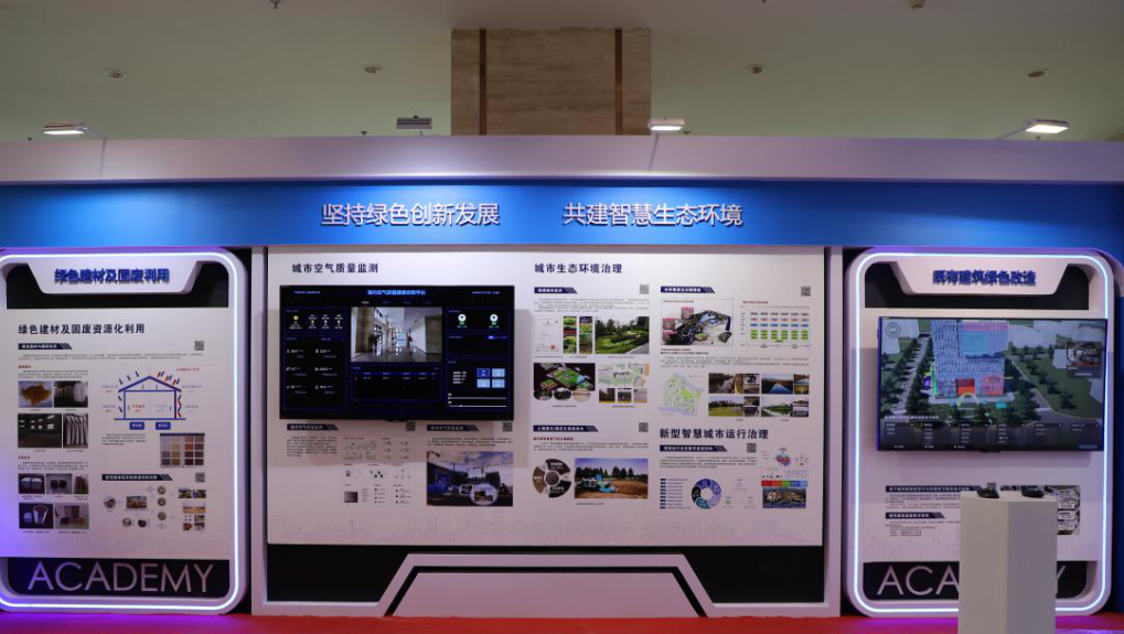 主要展示既有建筑綠色改造、海綿城市、水環境整治、污染土壤治理、城市空氣質量監測、綠色建材及固廢利用、新型智慧城市等方面成果。